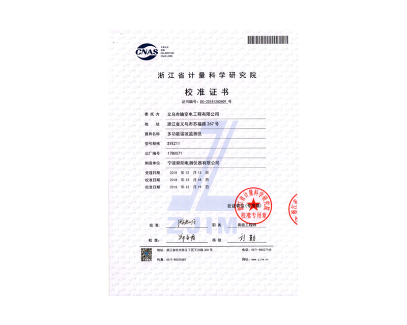 多功能諧波監(jiān)測儀校準(zhǔn)報告2020-09-17