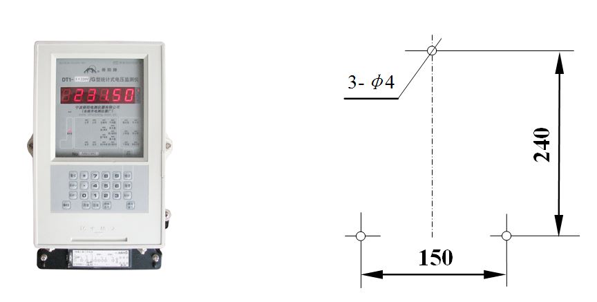 DT1/G系列電壓監(jiān)測儀采用鐵質(zhì)底盤,塑料罩殼,其外部形狀與三相電能表相仿。其外形尺寸為260×150×